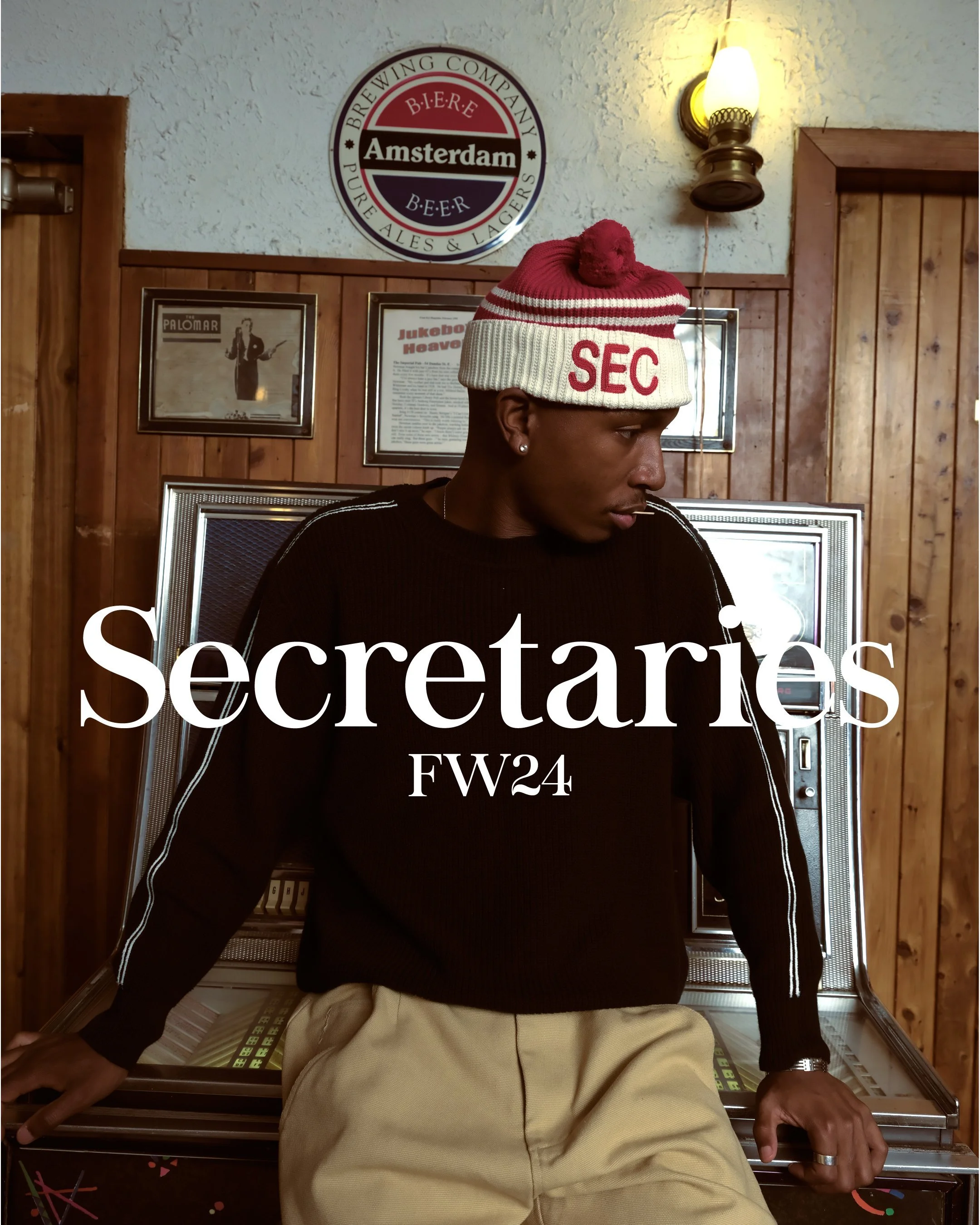 Inspired by the life of an an intern, Secretaries FW24 collection was titled ‘Coffee Run’ and depicts day to day activities of an intern, from office days spent to nights on the town participating in the local scene. To express these ideas in the campaign, I decided to shoot at Imperial Pub, a historic bar in Toronto with an iconic, jazz inspired interior. This bar is within our university campus, so it felt authentic. The studio photos were shot at Adidem Asterisks, where a few of my friends interned at in 2022.
